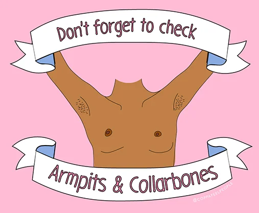 Breast tissue isn’t only found in your boobs. It reaches all the way up to your collarbone and underneath your armpit so this whole area should be checked each time too. This is the same for all genders.